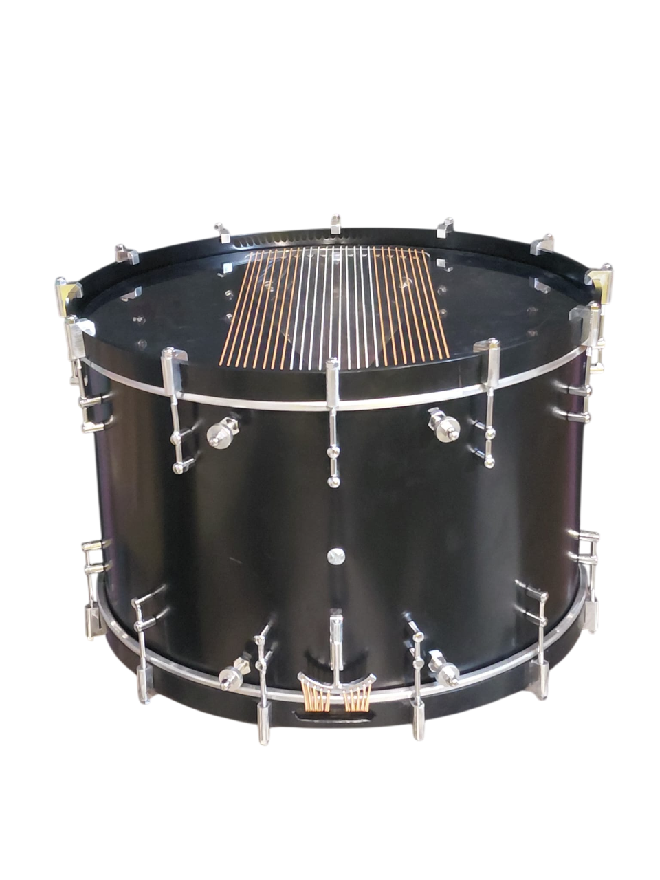 Tambor con varillas independientes no conectadas entre sí y situadas a tresbolillo / cruzadas. sin decoración externa a diferencia del tambor modelo cordón.