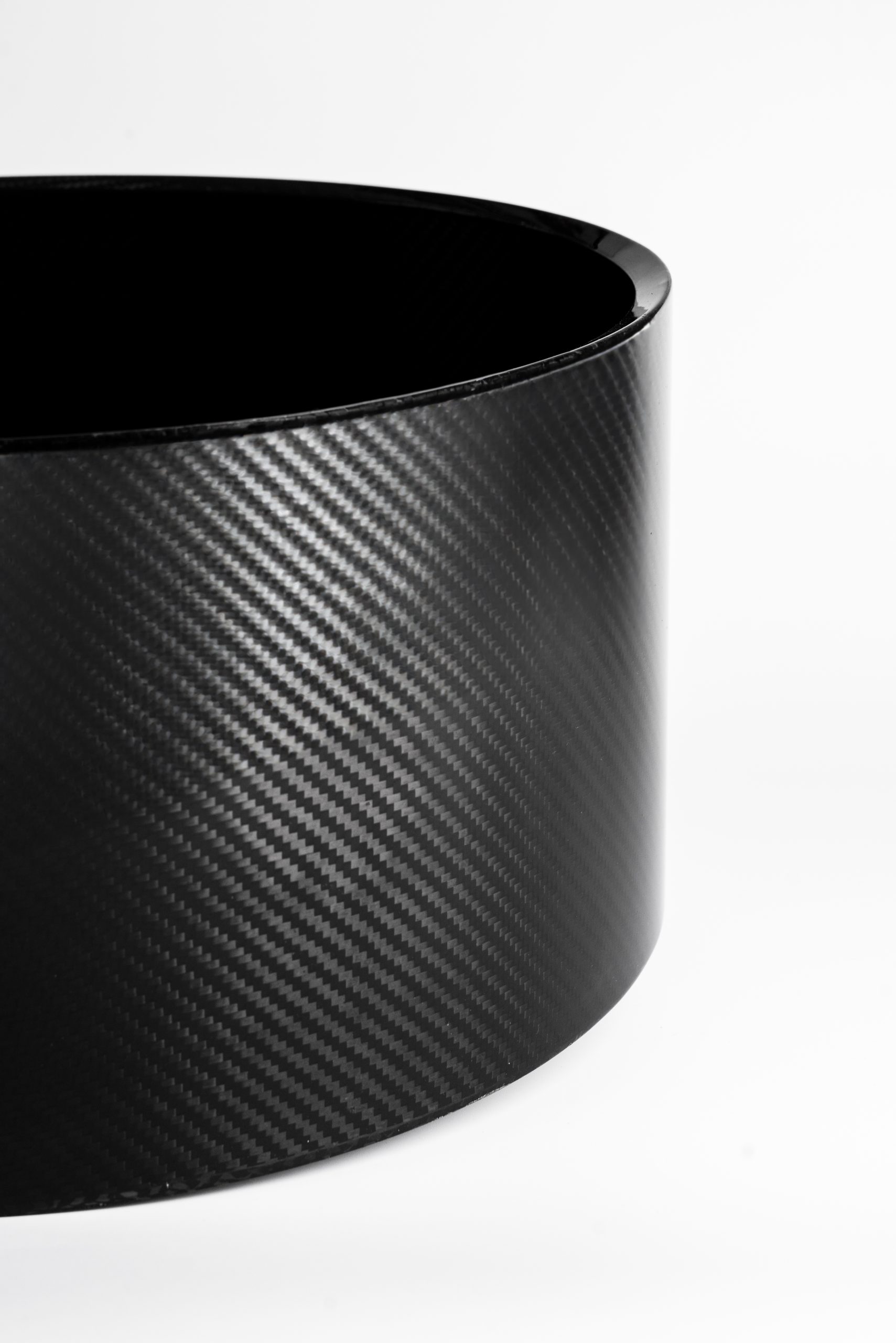 Tambor fibra de carbono con tejido visto en color negro y con acabado mate o brillo.