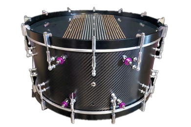 Tambor con varillas independientes no conectadas entre sí y situadas a tresbolillo / cruzadas, sin decoración externa a diferencia del tambor modelo cordón.